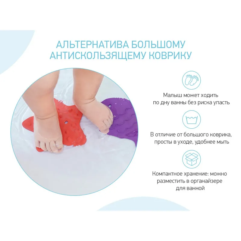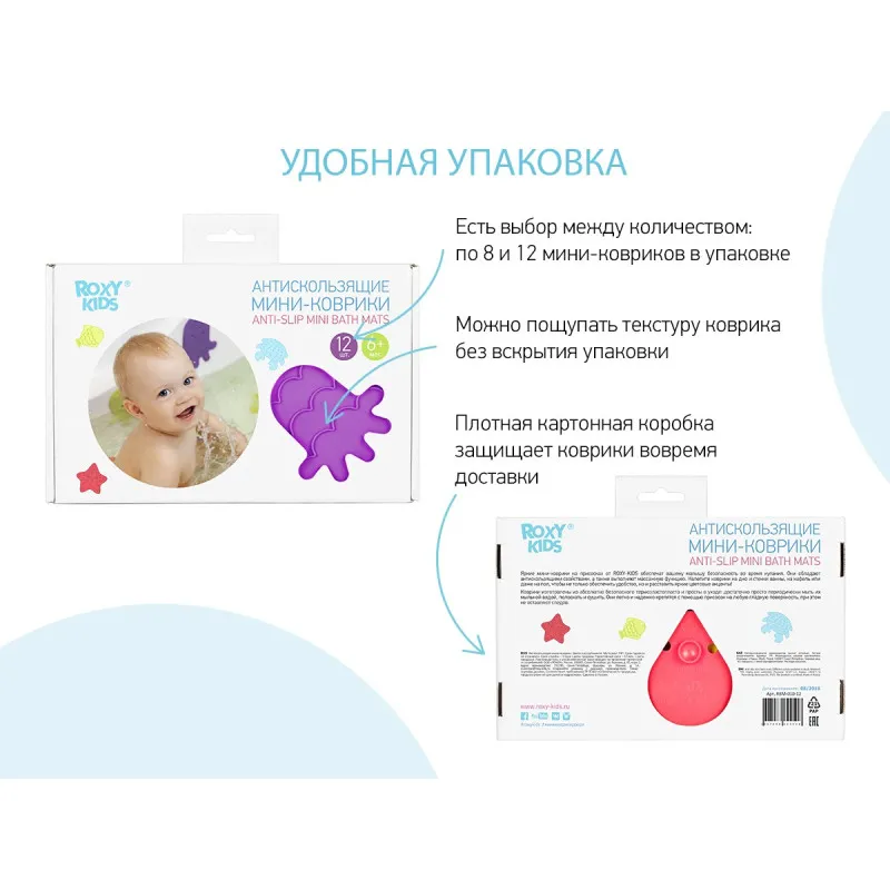 Covorașele de baie mini SEA ANIMALS de la ROXY-KIDS sunt fabricate în Rusia din material TPR modern și sigur.