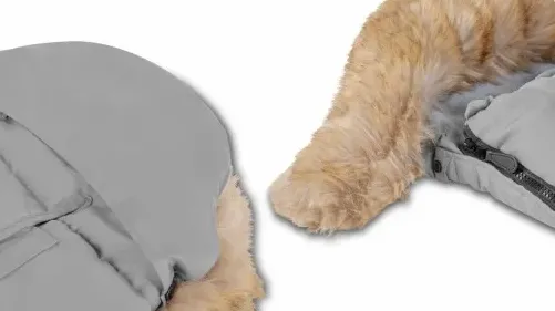 Sacul de dormit Lionelo Frode este decorat cu blană pufoasă detașabilă, care se fixează cu nasturi direct de glugă. Există două opțiuni de culoare pentru acest produs: gri cu blană bej și negru cu blană maro. Pentru a împrospăta produsul, acesta poate fi spălat manual la o temperatură scăzută de 30°C.