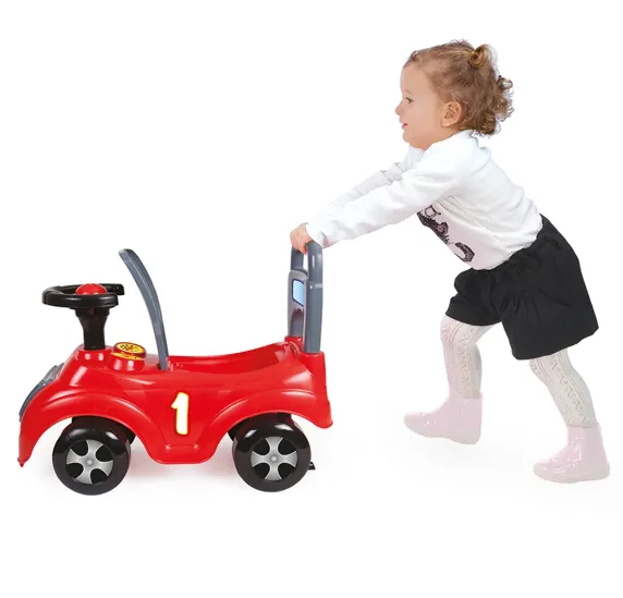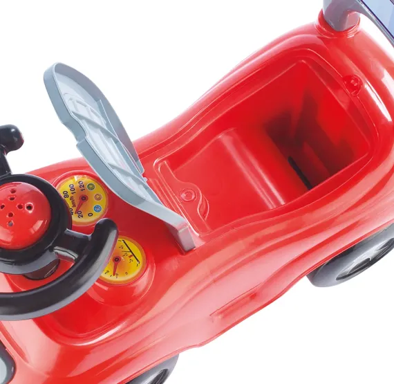 Modelul este ușor de utilizat, fiind acționat prin împingere cu picioarele, contribuind la dezvoltarea coordonării și echilibrului. Volanul este prevăzut cu claxon, pentru un plus de distracție în timpul jocului.