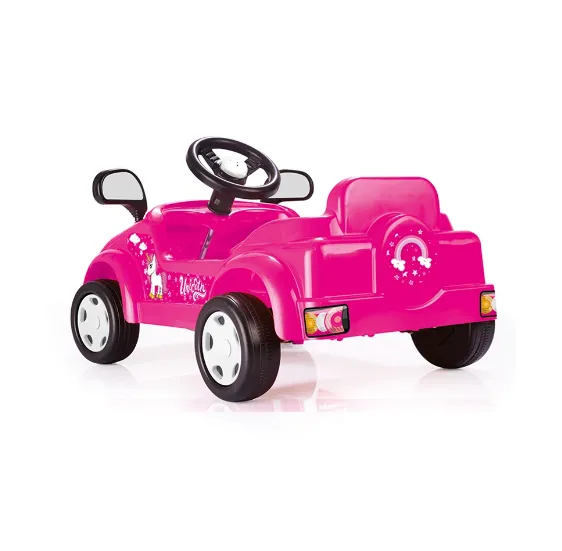 Designul atractiv cu tematică Unicorn o face foarte îndrăgită de cei mici, iar construcția stabilă permite utilizarea atât în casă, cât și afară, în curte sau pe terasă. Mașina este ușor de manevrat, dotată cu volan și claxon, pentru o experiență de joacă realistă și sigură.